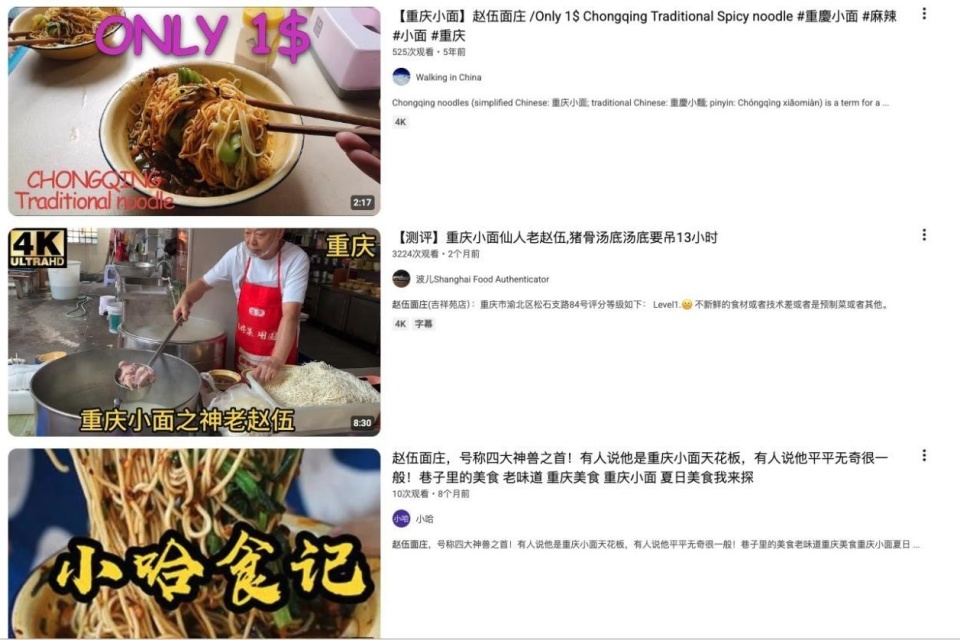 食客分享赵伍面馆于YouTube平台(央广网发 来源于网络)