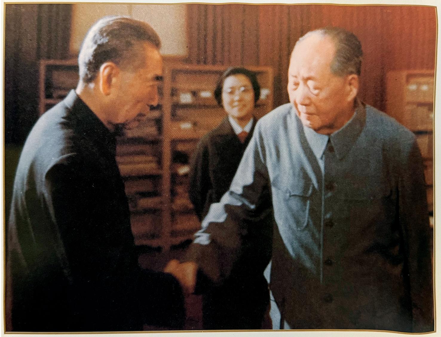 这令杜修贤惊诧不已,他的第一反应是拿起相机。透过相机,杜修贤看到:周恩来看着毛泽东,慢慢地伸出了手,毛泽东也把手伸了过去。杜修贤“咔嚓”一声按下快门:两双掌舵中国革命方向的手握在一起,组成了这神圣又沉重的瞬间。两天之后,周恩来就住院了,接受手术治疗。