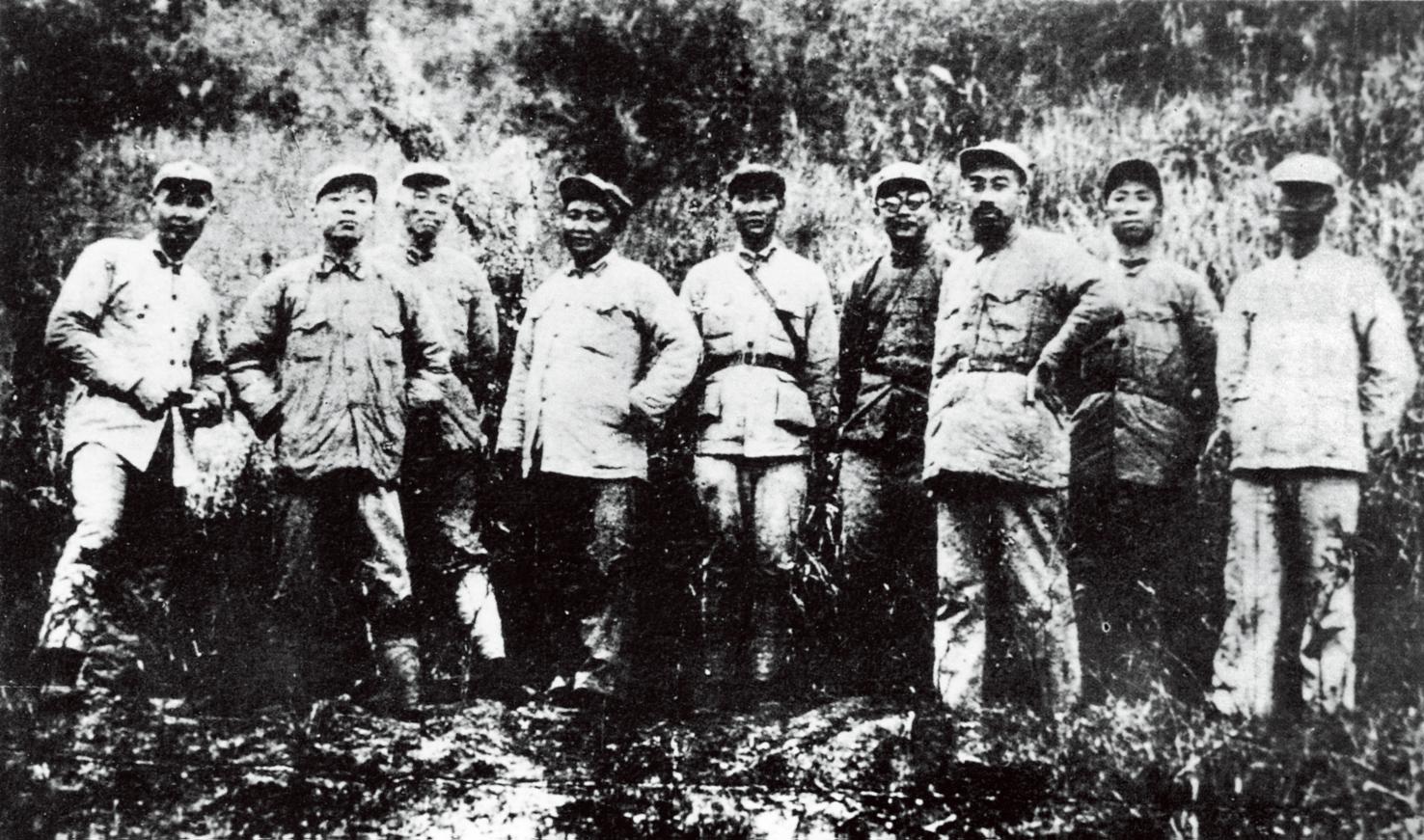1933年12月,红军第一方面军部分领导人在福建建宁合影。左起:叶剑英、杨尚昆、彭德怀、刘伯坚、张纯清、李克农、周恩来、滕代远、袁国平。(视觉中国)
