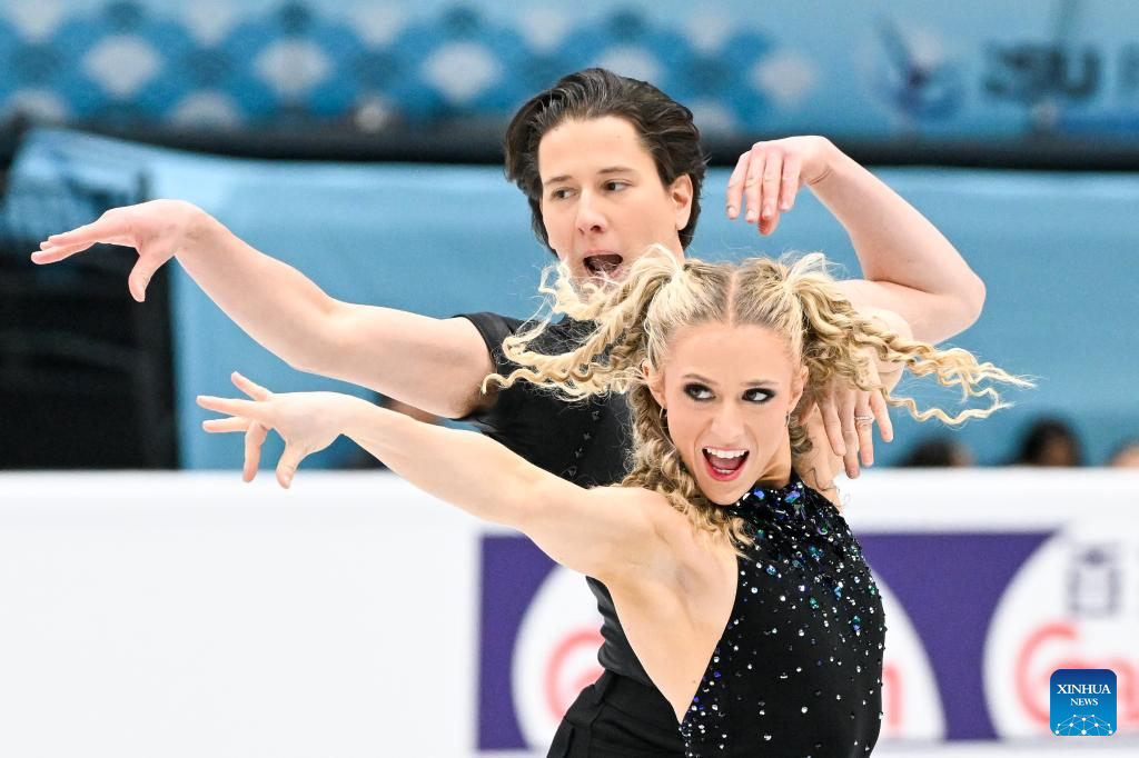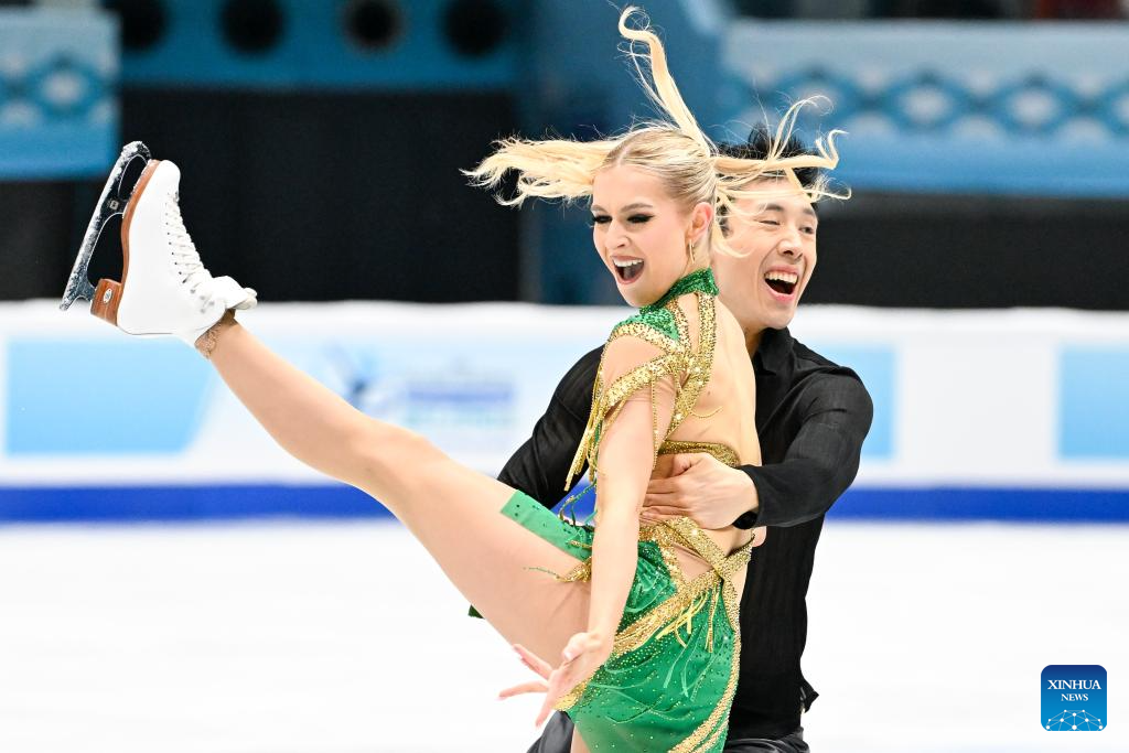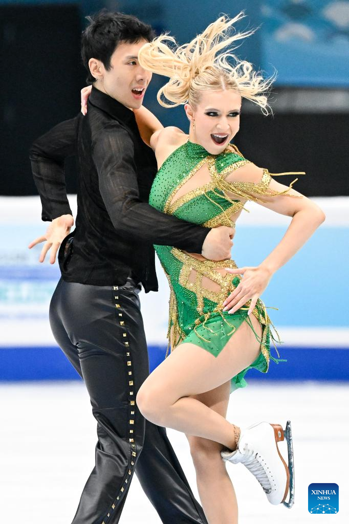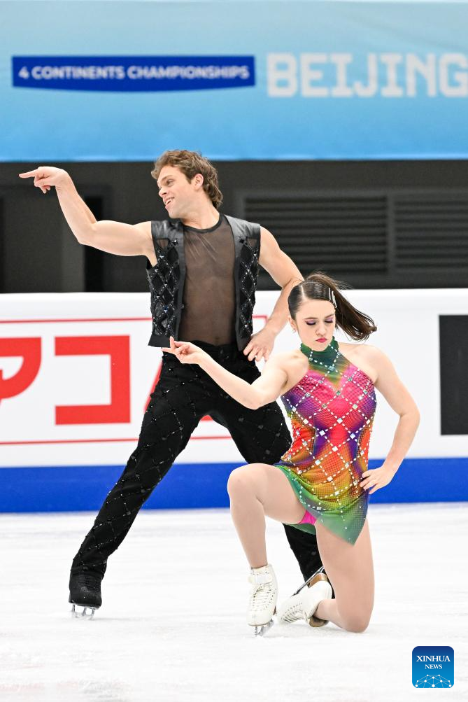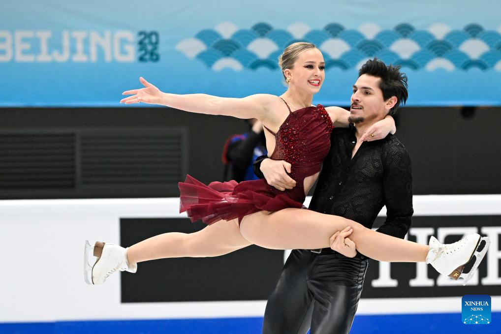 Emilea Zingas (R) and Vadym Kolesnik of the United States perform during the ice dance rhythm dance at the ISU Four Continents Figure Skating Championships in Beijing, China, Jan. 22, 2026. (Xinhua/Ju Huanzong)