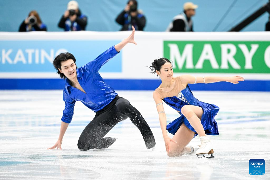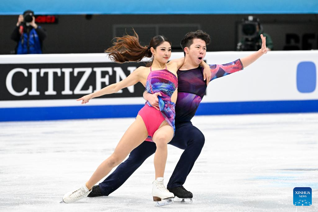 Yoshida Utana (L) and Morita Masaya of Japan perform during the ice dance rhythm dance at the ISU Four Continents Figure Skating Championships in Beijing, China, Jan. 22, 2026. (Xinhua/Ju Huanzong)