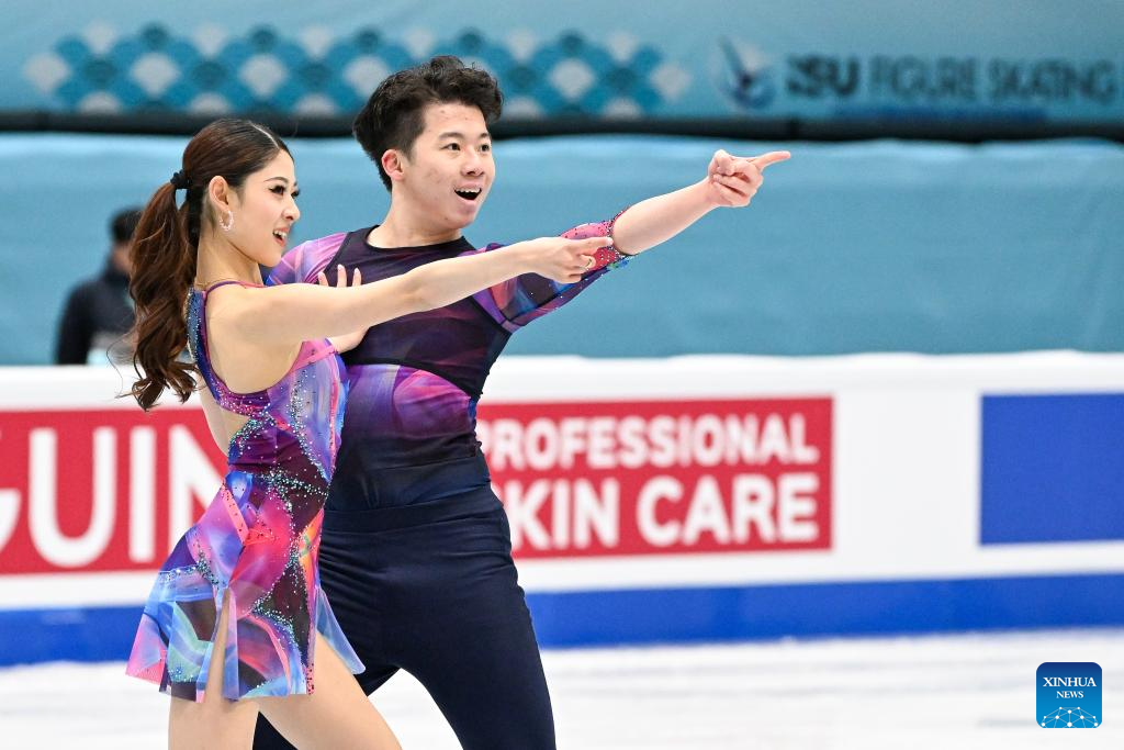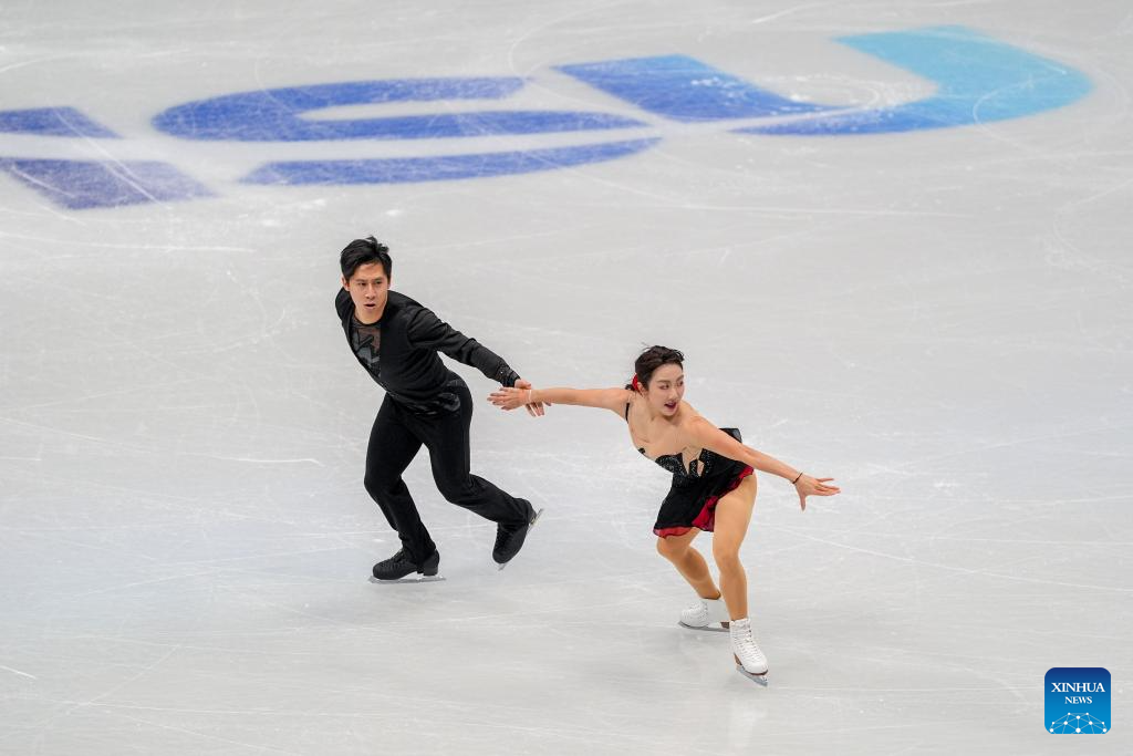 Wang Shiyue (L) and Liu Xinyu of China perform during the ice dance rhythm dance at the ISU Four Continents Figure Skating Championships in Beijing, China, Jan. 22, 2026. (Xinhua/Ju Huanzong)