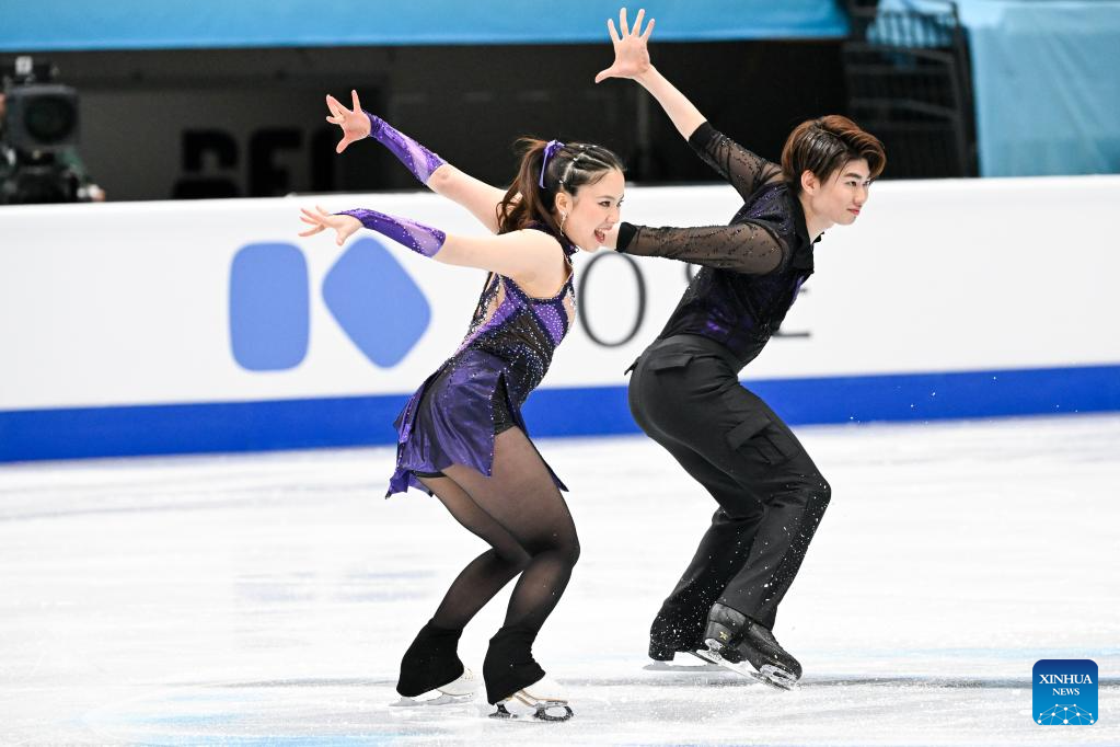 Lim Hannah (R)/Quan Ye of South Korea perform during the ice dance rhythm dance at the ISU Four Continents Figure Skating Championships in Beijing, China, Jan. 22, 2026. (Xinhua/Ju Huanzong)