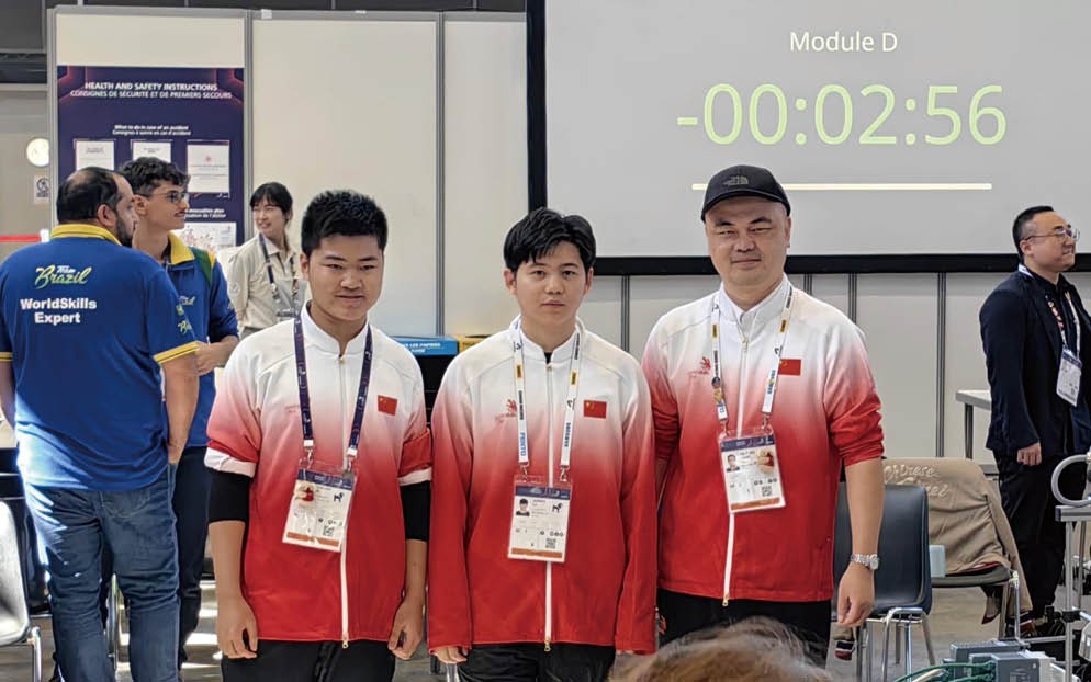 2024年,谢辉铉(右)和搭档在世界技能大赛夺得工业4.0金牌。