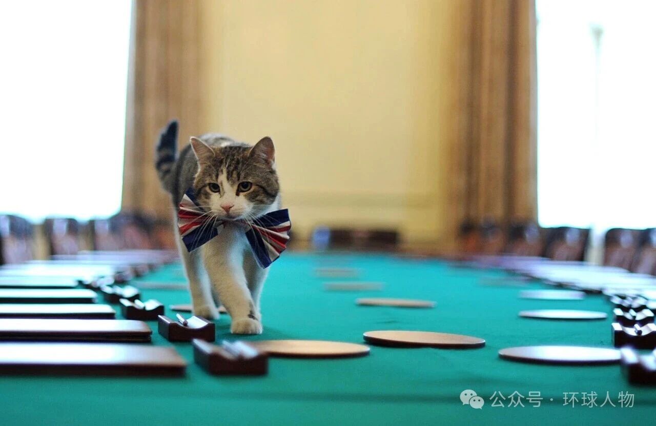 最近,久未露面的英国“首席捕鼠官”拉里(图二),因一则趣闻重新回到了公众视野。2026年1月,波兰总统到访唐宁街10号时,这只19岁的虎斑猫突然闯入红毯,差点儿绊倒一名摄影师(图一)。拉里上一次出现在新闻里,还是2025年7月。当时,它刚刚过完19岁生日,这相当于人类92岁高龄。法国总统马克龙访问英国时,英国首相斯塔默还笑着介绍:“拉里才是唐宁街最受欢迎的(图十八)。”对于年轻人来说,拉里的名字或许有些陌生。但回溯它的职业生涯,足以用“传奇”来形容。2011年,唐宁街10号首相府出现了严重的鼠患,引发媒体广泛报道和公众关注。为了解决这一尴尬问题,唐宁街工作人员从伦敦的“巴特西猫狗之家”收养了当时4岁的拉里。卡梅伦正式授予它“内阁办公厅首席捕鼠官”的头衔,拉里因此成为英国政府第一只有官方认证的猫。至今,它已在任15年,比英国任何一个主要政党的领导人任期都长。在这15年里,英国首相换了六位,从卡梅伦、特蕾莎·梅、鲍里斯·约翰逊、特拉斯、苏纳克,再到如今的斯塔默,拉里始终是唐宁街10号“铁打的主人”。据说卡梅伦私下并不喜欢猫,但为了公众形象,不得不抱着拉里拍下亲密合影,并公开宣称“我爱它”(图十五)。特蕾莎·梅也曾在采访中直言自己更喜欢狗,但仍表示首相府的某些地盘由拉里“说了算”。除了与首相们的“权力斗争”,拉里还要应对来自同行的挑战。它曾与英国外交部的“捕鼠官”帕默斯顿为争夺地盘多次大打出手,还受过伤(图五、图六)。在唐宁街养猫是英国政坛的悠久传统,可以追溯到16世纪。拉里的著名前任威尔伯福斯(图十九)曾“在任”13年,经历了四任首相。如今,拉里已经打破了这一纪录,成为任职时间最长的“捕鼠大臣”。如今,拉里的所有开销都由唐宁街的工作人员自愿承担,不花纳税人一分钱。它喜欢在唐宁街的台阶上晒太阳,平静地度过每一天。(作者:刘沓椰)(图源:英国政府官网、BBC、英国《卫报》、美国《大西洋月刊》、美国《时代周刊》、美国《纽约时报》)