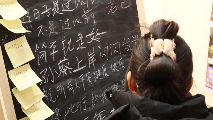 “小黑板上,有人留心愿,有人在祝福,有人写感悟。写不下的时候,就贴上几张便利贴。”便利店店长已对这番景象习以为常。在她看来,这块不大的黑板,就像一个“情绪树洞”,每天都有素不相识的人,在这里完成一场场无需言语的对话。