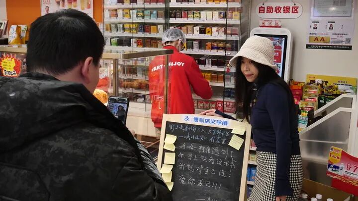 便利店文学的感染力,在于它完成了一次对数字生活的温柔“反向调节”。它无意取代线上交流,却以触手可及的实体性,为疏离的网络社交提供了补偿,让公共表达回归真实的人际互动。
