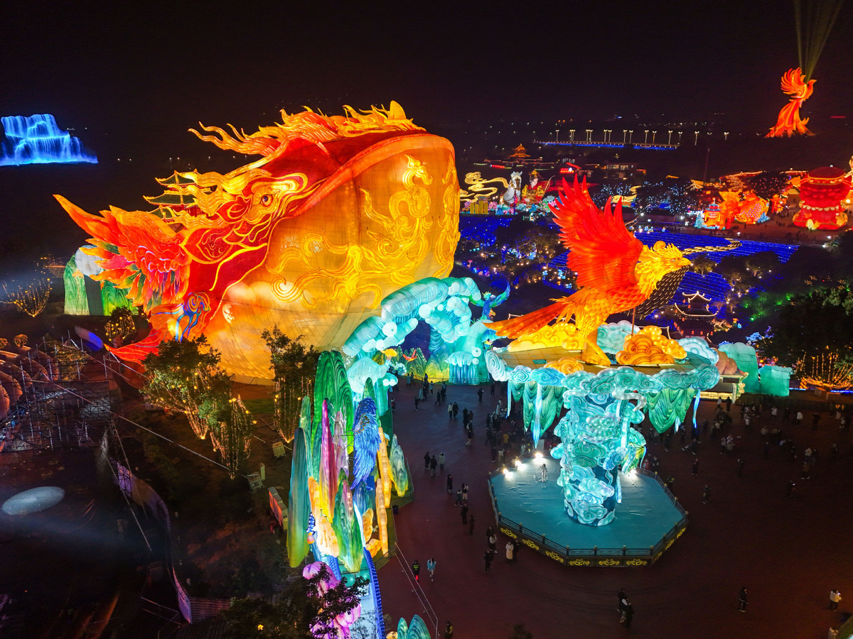 This year's Zigong lantern festival features 11 sets of large-scale lanterns and more than 200 smaller displays across 10 themed zones, presenting a spectacular fusion of traditional craftsmanship, cultural storytelling and modern technology.