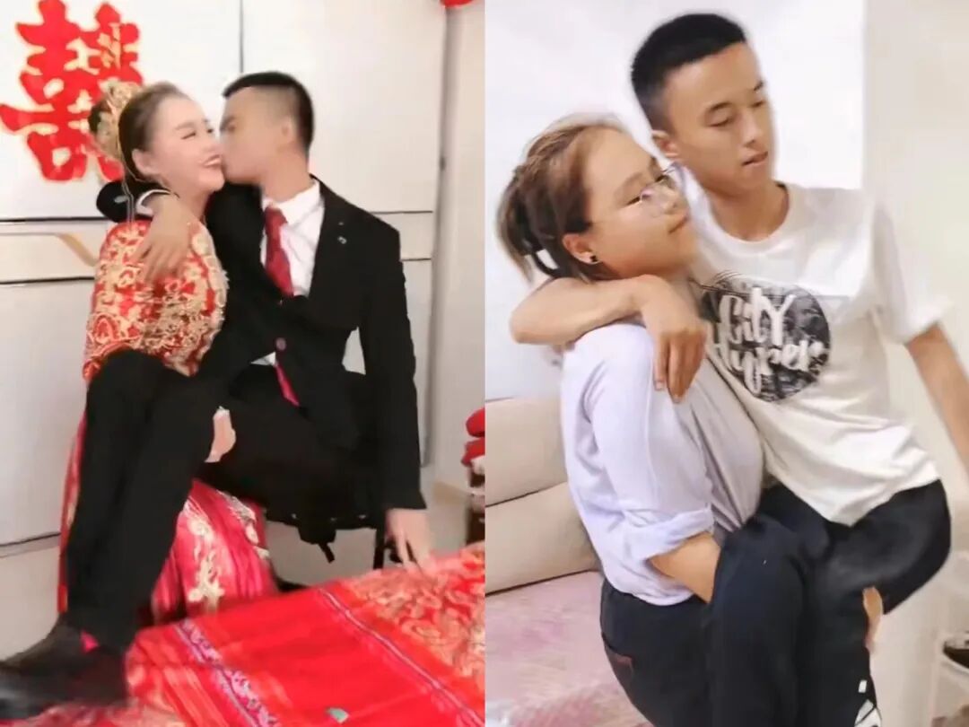 新娘俯身抱起新郎的那一刻