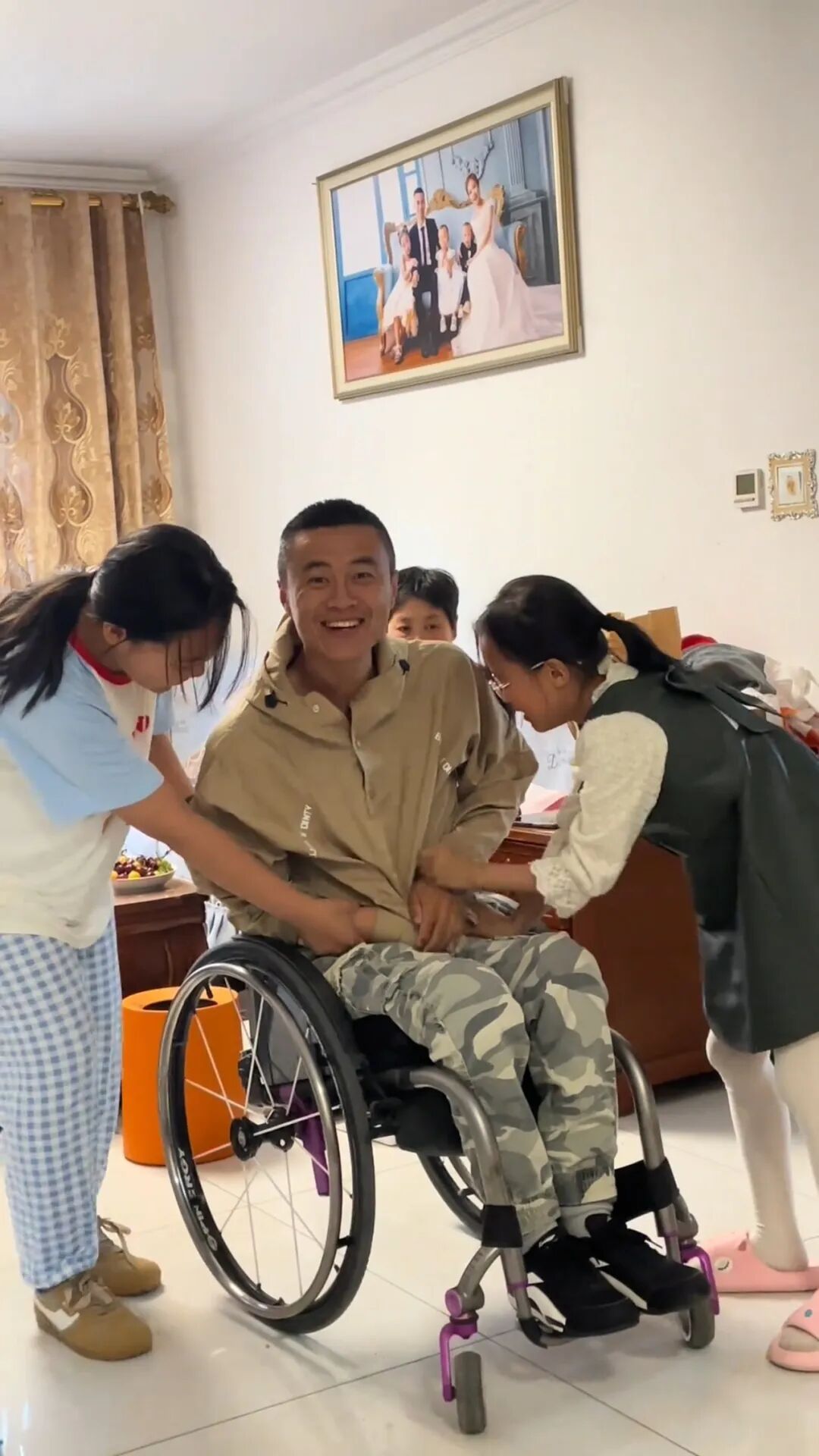 在妻子和孩子的陪伴下