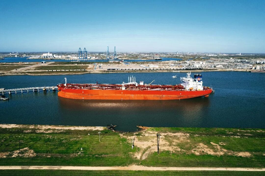 ·当地时间2026年1月16日,载有委内瑞拉原油的油轮停靠在美国得克萨斯州费里波特港。在入侵委内瑞拉后,美国政府表示将控制5000万桶委内瑞拉原油。(视觉中国)