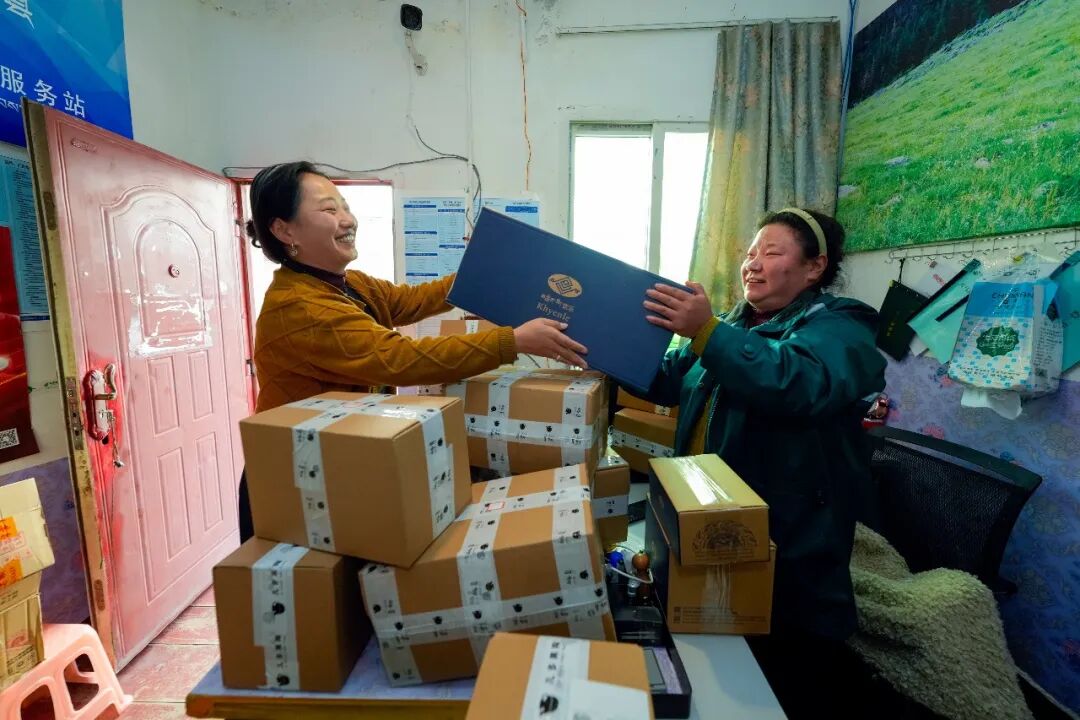 达瓦卓玛在家附近的邮政物流快递服务站邮寄订单货品。