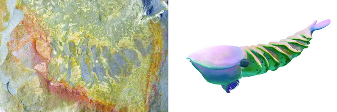 花垣生物群节肢动物——苏鲁斯虾化石图(左)和复原图 新华社发