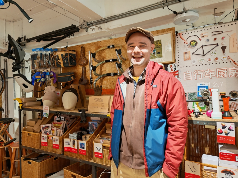 这家店的主理人是美国人,中文名叫王勤辉,在社交媒体平台,他叫自己王大卫(David Wang)。他打理的这家Brook&Breeze的自行车工作坊,名称来自他的两个女儿,“从设计自行车,到亲手做出来,这种感觉很棒。”