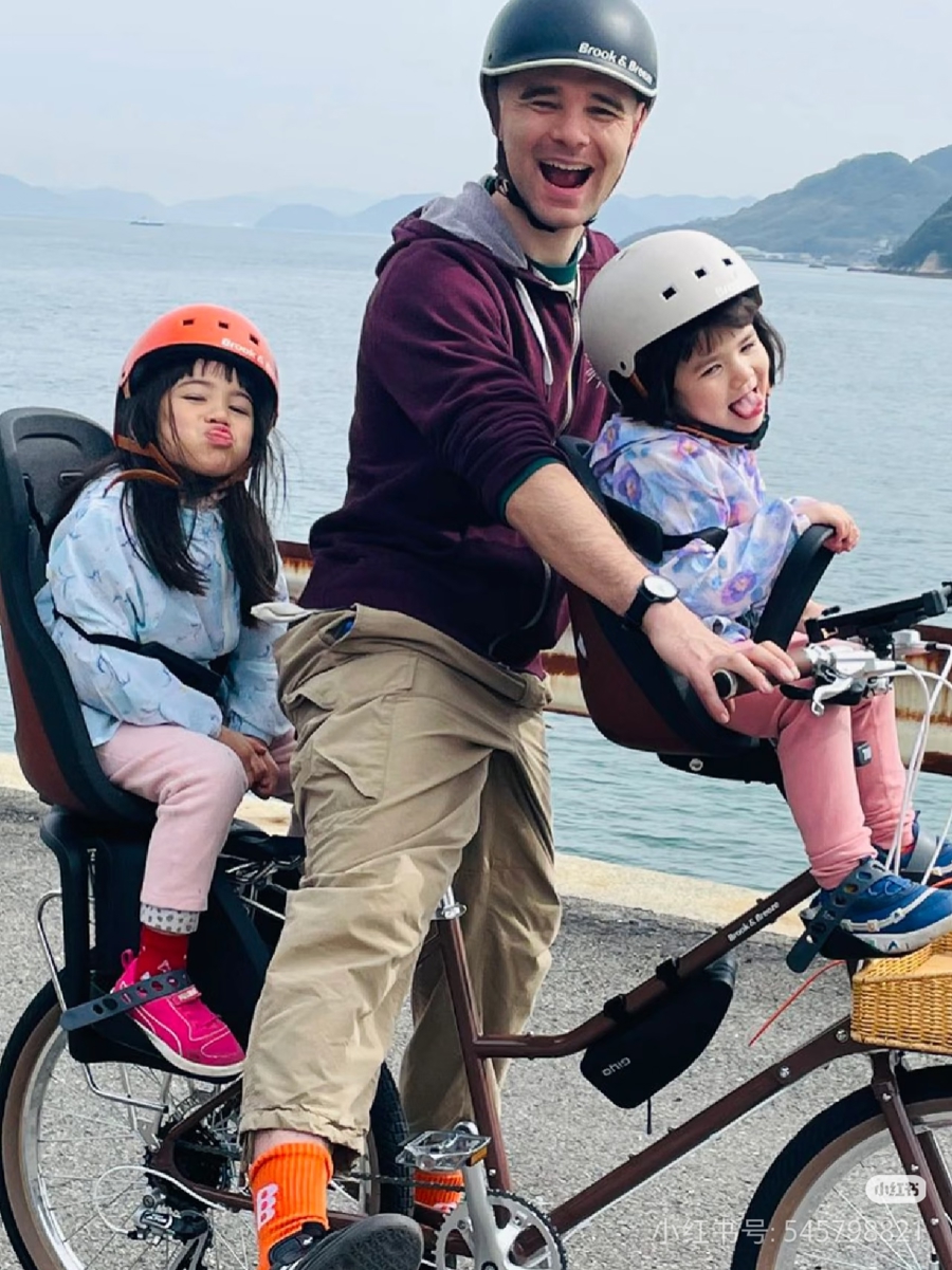 王大卫带着两个女儿骑行 受访者 供图