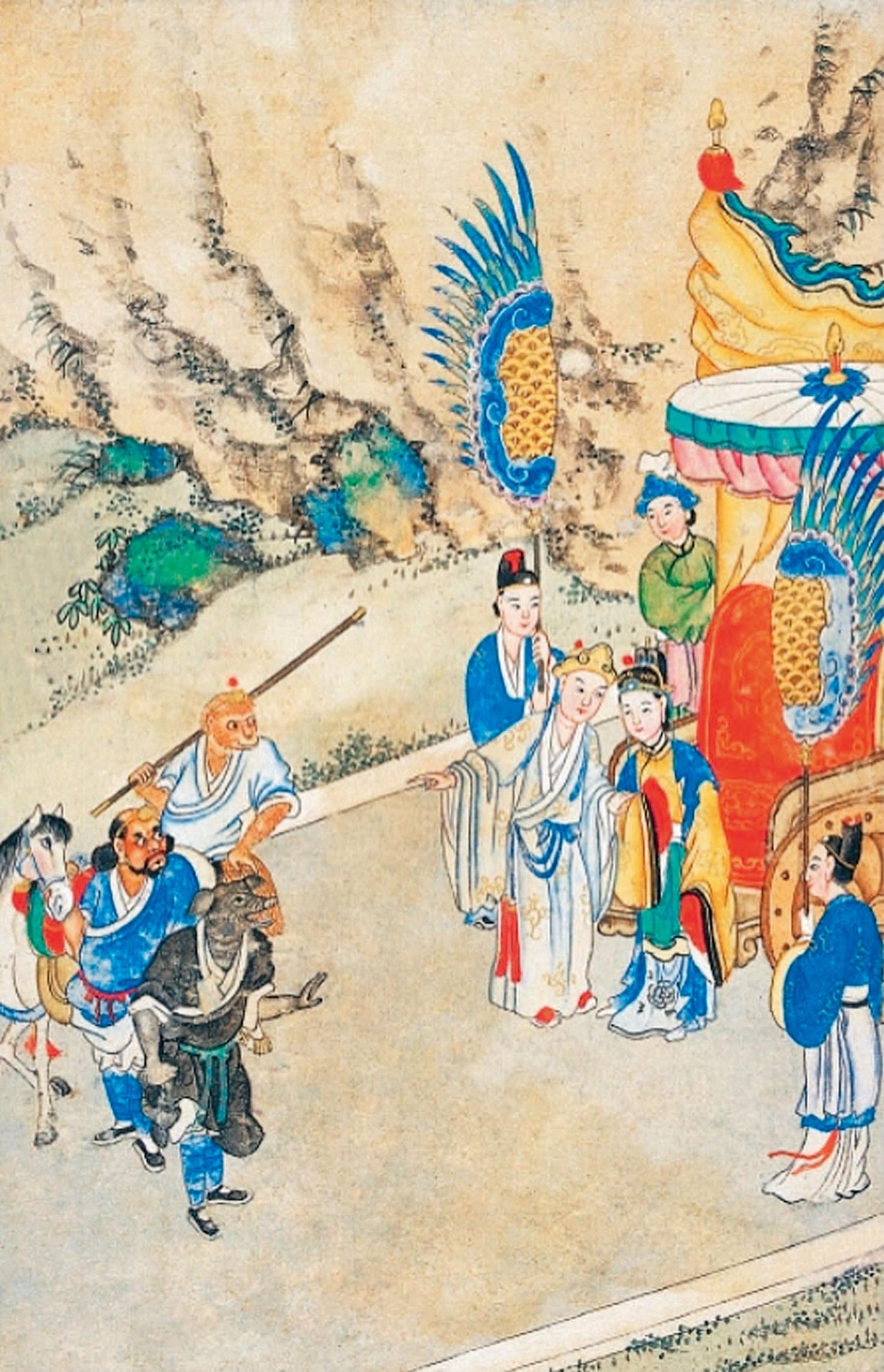 唐僧遇到女儿国国王。(《清彩绘全本西游记》,中国书店出版社)