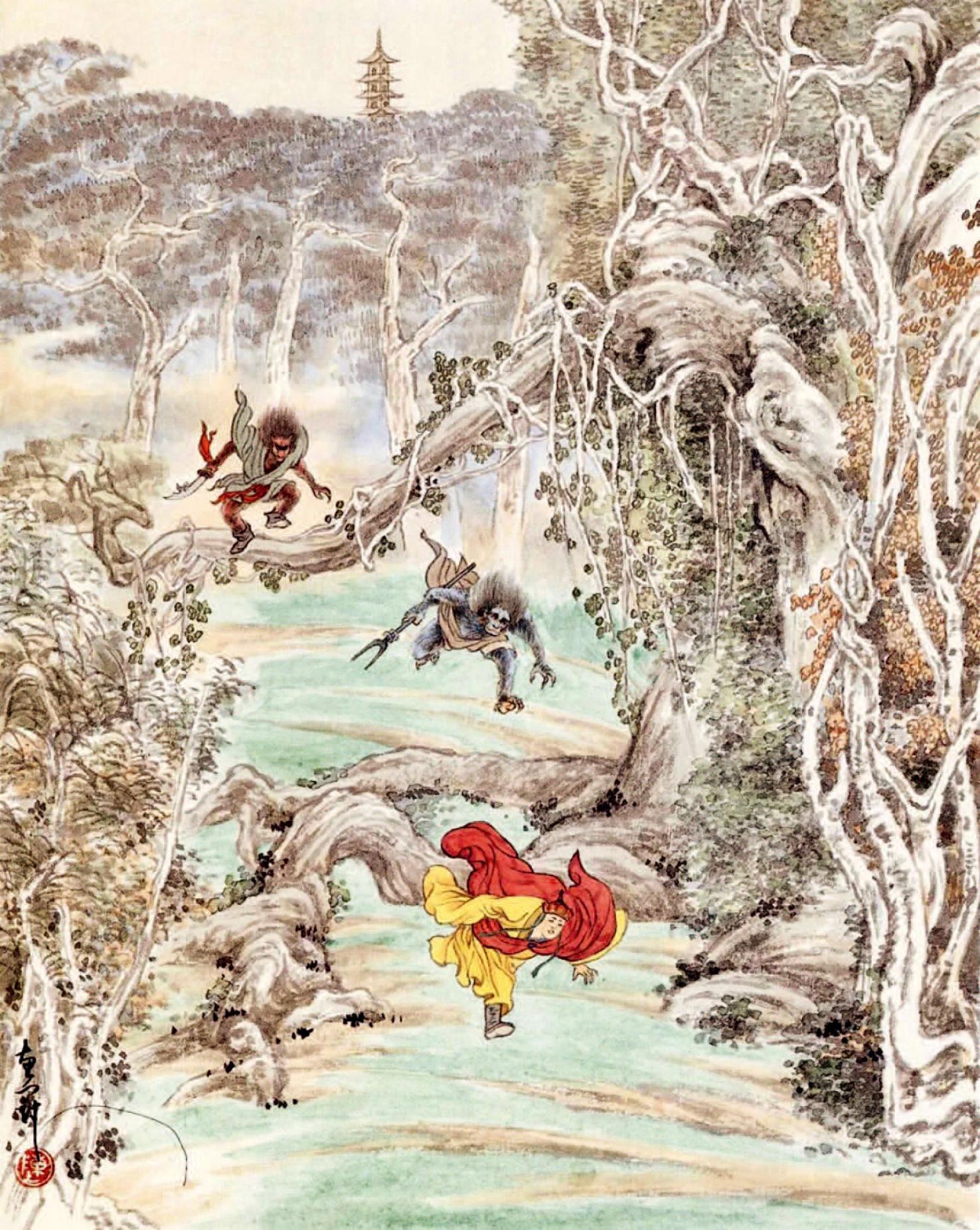 取经路上,唐僧不断遭遇各种魔怪和考验。(《陈惠冠新绘全本西游记》,上海古籍出版社)