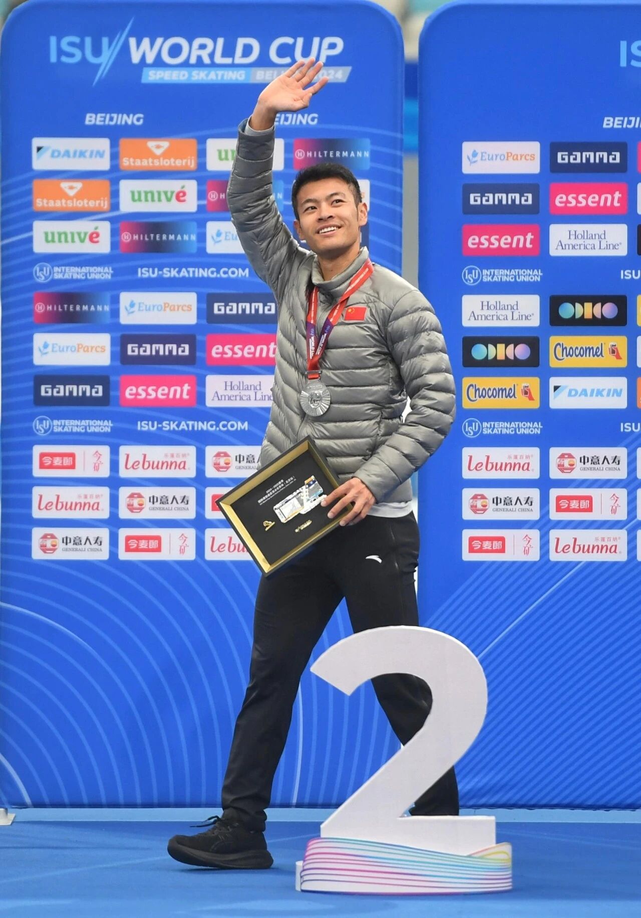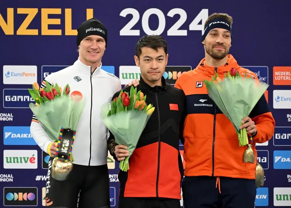 2024年3月,在德国因采尔举行的短距离全能世锦赛上,宁忠岩凭借出色的发挥,历史性地夺得金牌(图六),实现了中国男子速滑在该项目上零的突破。