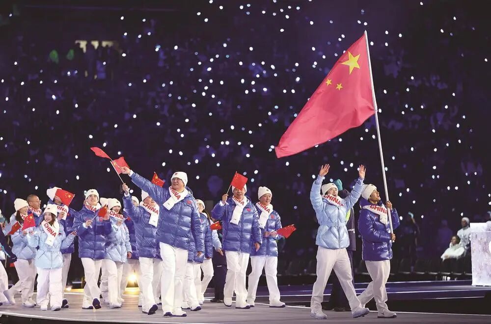 当地时间2月6日晚8时,2026年米兰—科尔蒂纳冬奥会开幕式在米兰圣西罗体育场举行。开幕式上,中国体育代表团亮相,速度滑冰男子运动员宁忠岩和短道速滑女子运动员张楚桐担任旗手。