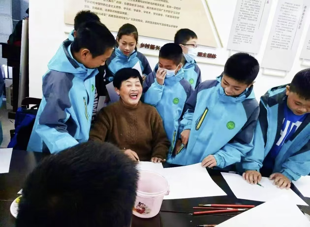 她的讲台不只一处。自2019年起,万月仙受聘成为沟溪小学的农民画教学老师,将艺术的种子播撒进孩子们的心田。在孩子们眼中,她是会变“魔术”的万奶奶,能让平凡的纸张开出花,让朴素的颜料讲故事。去年3月,以她名字命名的“万月仙农民画工作室”在余东村成立,并推行“师带徒”传承模式。自此,每天清晨,她都会准时坐上城乡公交,从居住的五十都村赶往余东的工作室。
