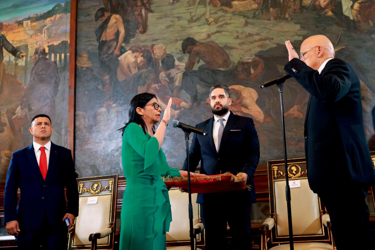 当地时间2026年1月5日,德尔西·罗德里格斯在委内瑞拉联邦立法宫庄严宣誓:“我以玻利瓦尔共和国宪法总统尼古拉斯·马杜罗·莫罗斯的执行副总统身份前来宣誓就职。我带着痛苦前来,因为我们的两位英雄被美国绑架当作人质。但我必须说,我也带着荣誉在此宣誓。”