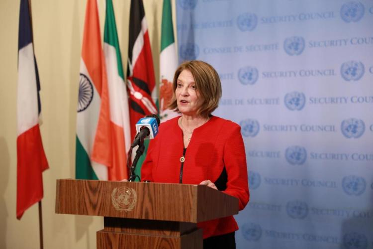 2022年1月4日,在位于纽约的联合国总部,时任挪威常驻联合国代表尤尔发表讲话。新华社记者谢锷摄