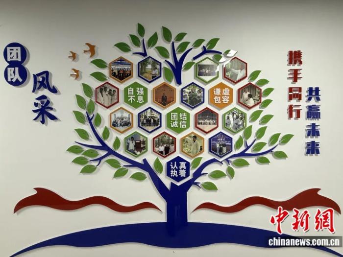范国强团队的合影等,在墙上组成一棵树的形状 赵一凡 摄
