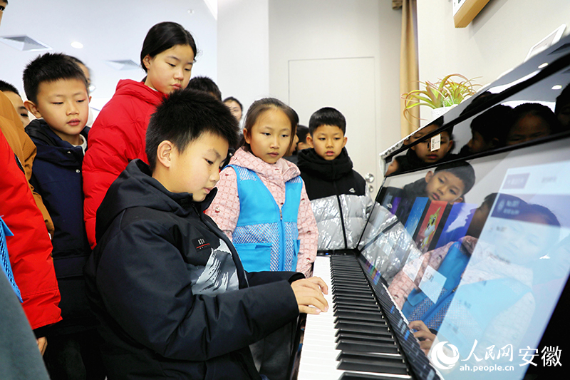 寒托班学员们正在体验展馆内的钢琴。人民网 郭昊摄