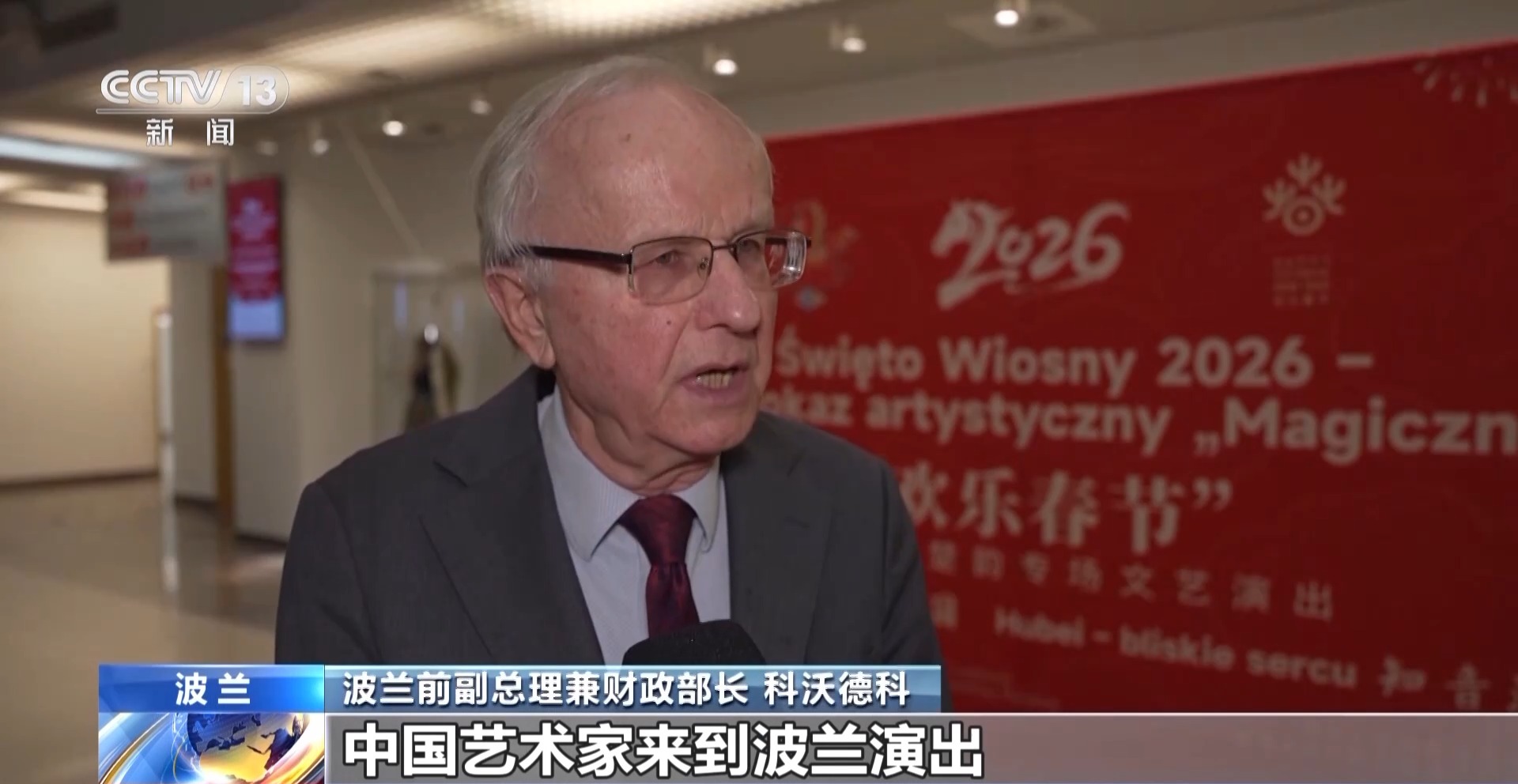 波兰前副总理兼财政部长 科沃德科:中国艺术家来到波兰演出,跟我们一起庆祝马年春节,这令人高兴,是我们的荣幸。世界各地对中国文化了解越多,对世界就越有益。