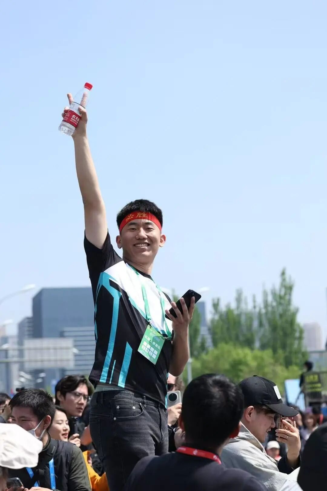 ·姜哲源在人形机器人半程马拉松赛现场。(受访者供图)