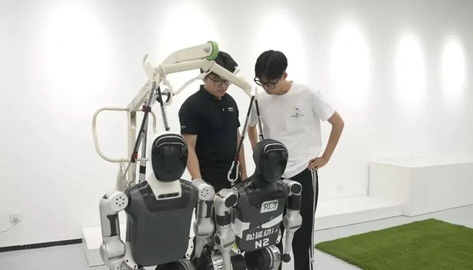 现实远比想象艰难。一会儿机器人的头掉了,一会儿电线甩出来了,甚至还被摔得冒烟起火……尽管状况频出,却没有一个人选择放弃。从硬件调试到算法优化,整个团队都在通力配合。经过3周的改进,N2首次稳稳落地,成功完成后空翻,成为全球首个在室内外多场景实现连续空翻的人形机器人。