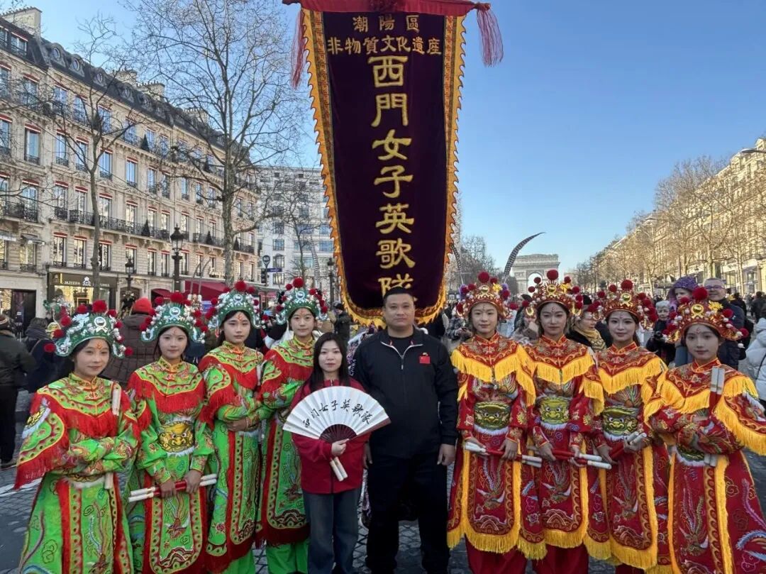 当时,她正带领25名队员在欧洲巡演,从德国哈瑙、法兰克福到法国里昂,最后在巴黎香榭丽舍大街,“中华战舞”与凯旋门历史性“同框”。而家乡的分队,在正月初二同样有一场重要演出。