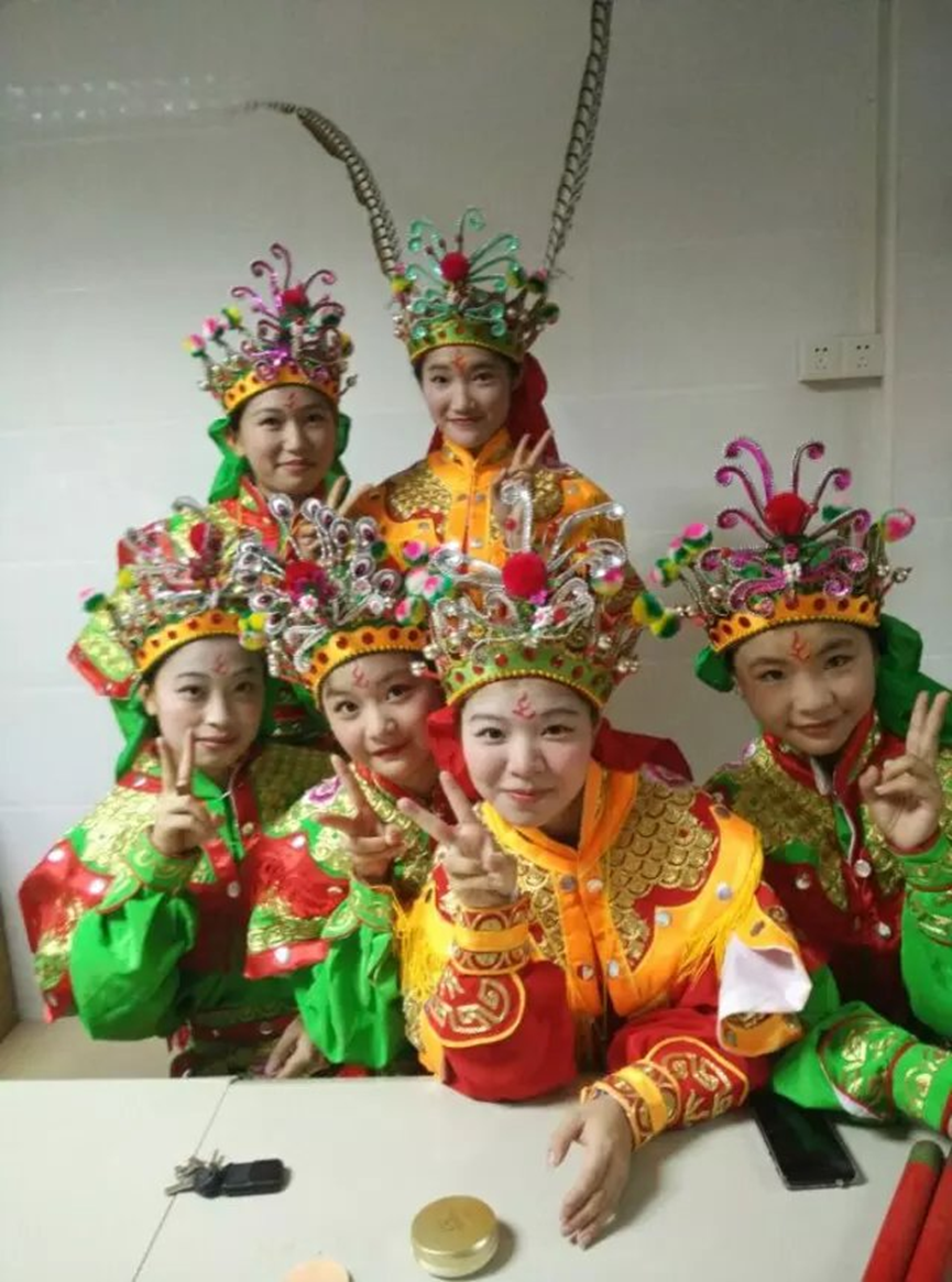 每次重大演出前,吴燕花都会亲手为队员们化妆,并在每个人额头绘上独特的“火”形标志。“火”代表着西门女子英歌队的团魂,也寓意着队伍的未来红红火火。