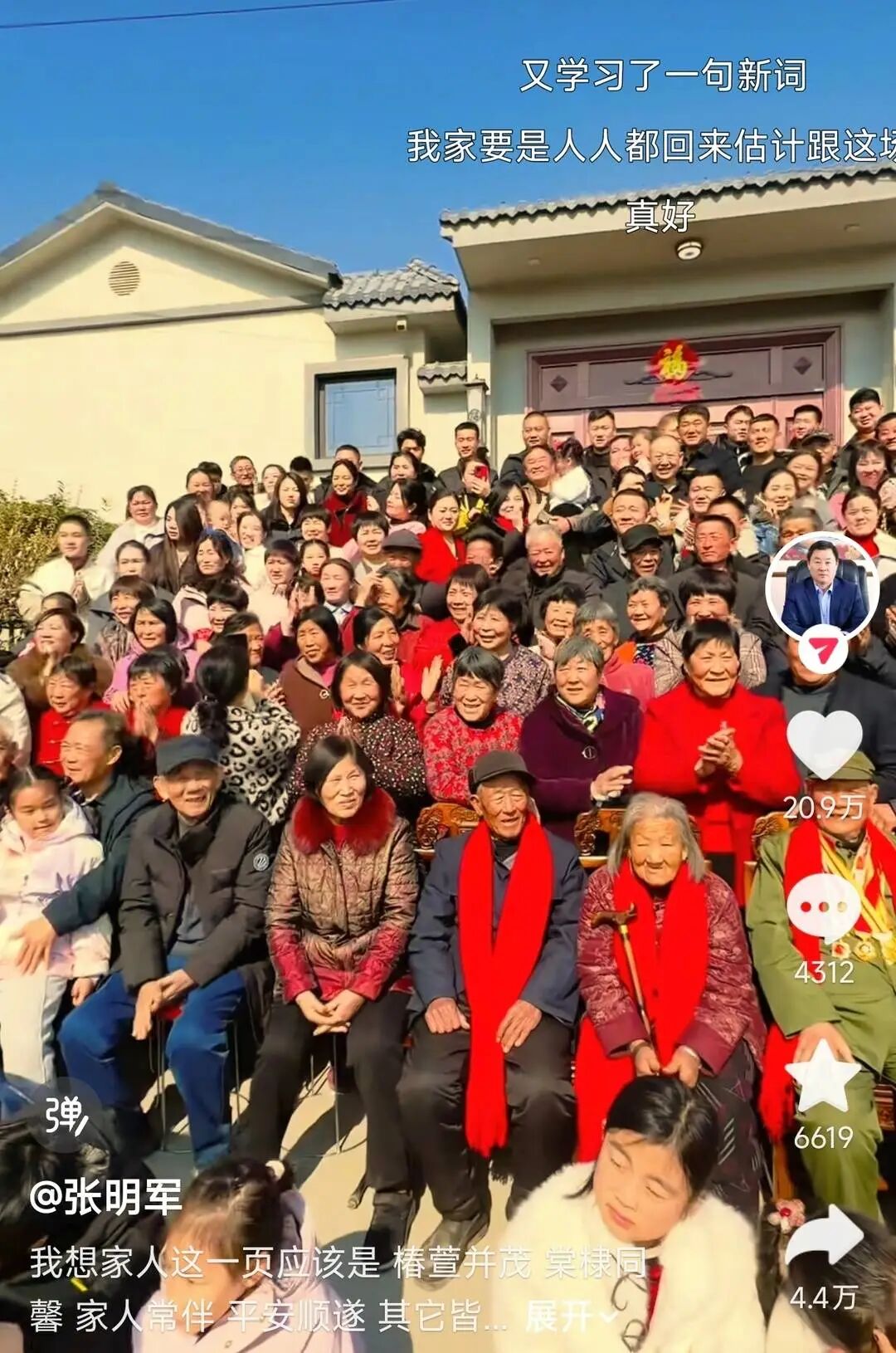 张明军说,他也没想到这张照片会引起这么大反响。“现在这样的大家族确实少了,大家都说看到我们一家这么团结、兴旺,特别感动。”