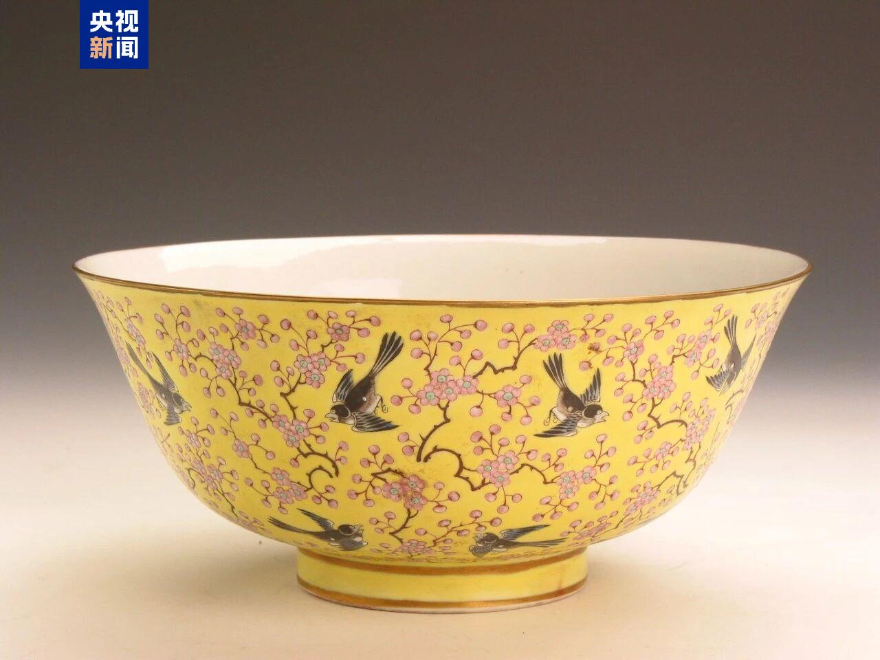△清同治款粉彩黄地梅鹊大碗 沈阳故宫博物院藏