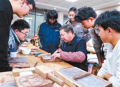 张继中在开封职业技术学院为学生示范刻版。张艺全摄
