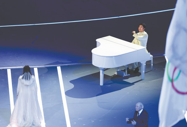 Globally renowned pianist Lang Lang performs during the opening ceremony at the 2026 Milano Cortina Winter Olympics on Feb 6, joined by world-renowned mezzo-soprano Cecilia Bartoli. [Photo by DU XIAOYI/XINHUA]