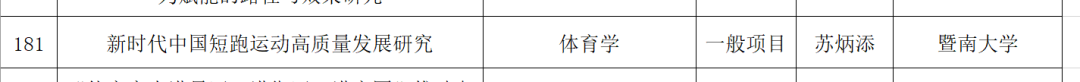 稍早前,2月10日,广东省哲学社会科学规划2026年度常规项目、三类研究专项拟立项名单公示,苏炳添教授的课题《新时代中国短跑运动高质量发展研究》拟立项一般项目,学科分类为“体育学”,所属学校为暨南大学。