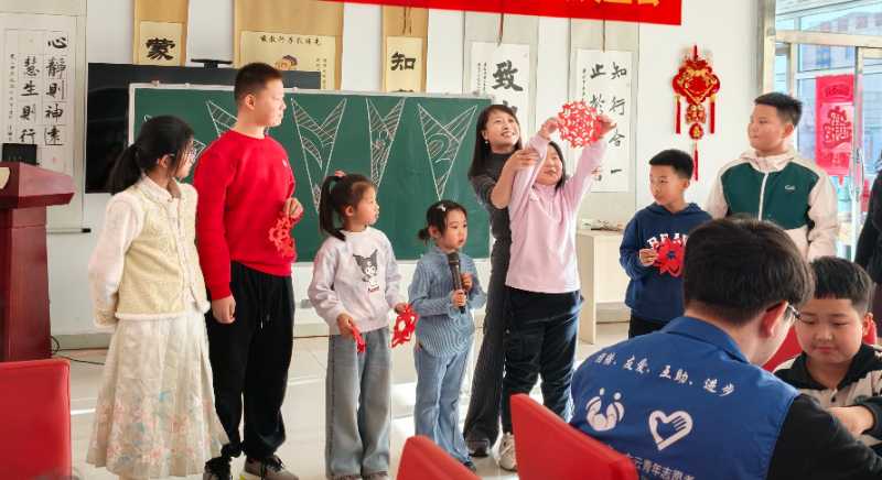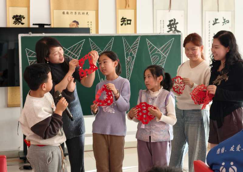 正月初七,希冀在“诗社”教孩子们剪窗花,写诗歌。 采访者供图