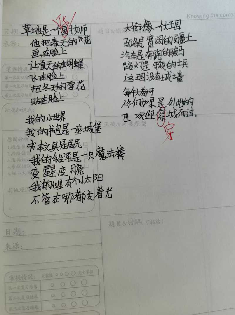图为希冀指导孩子们写作的诗稿。 受访者供图