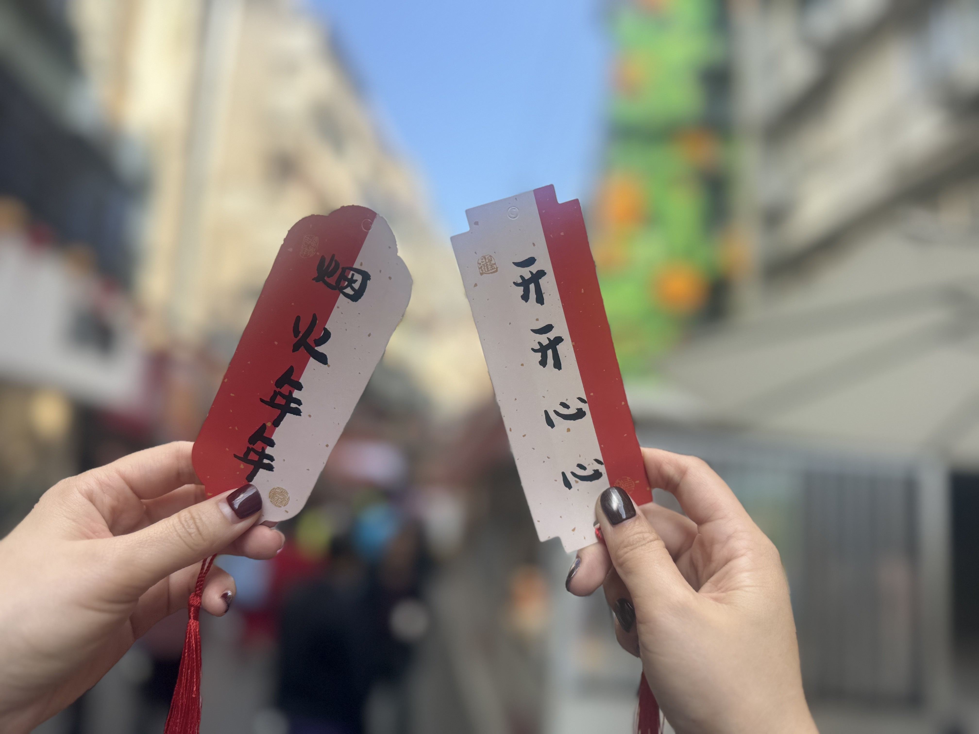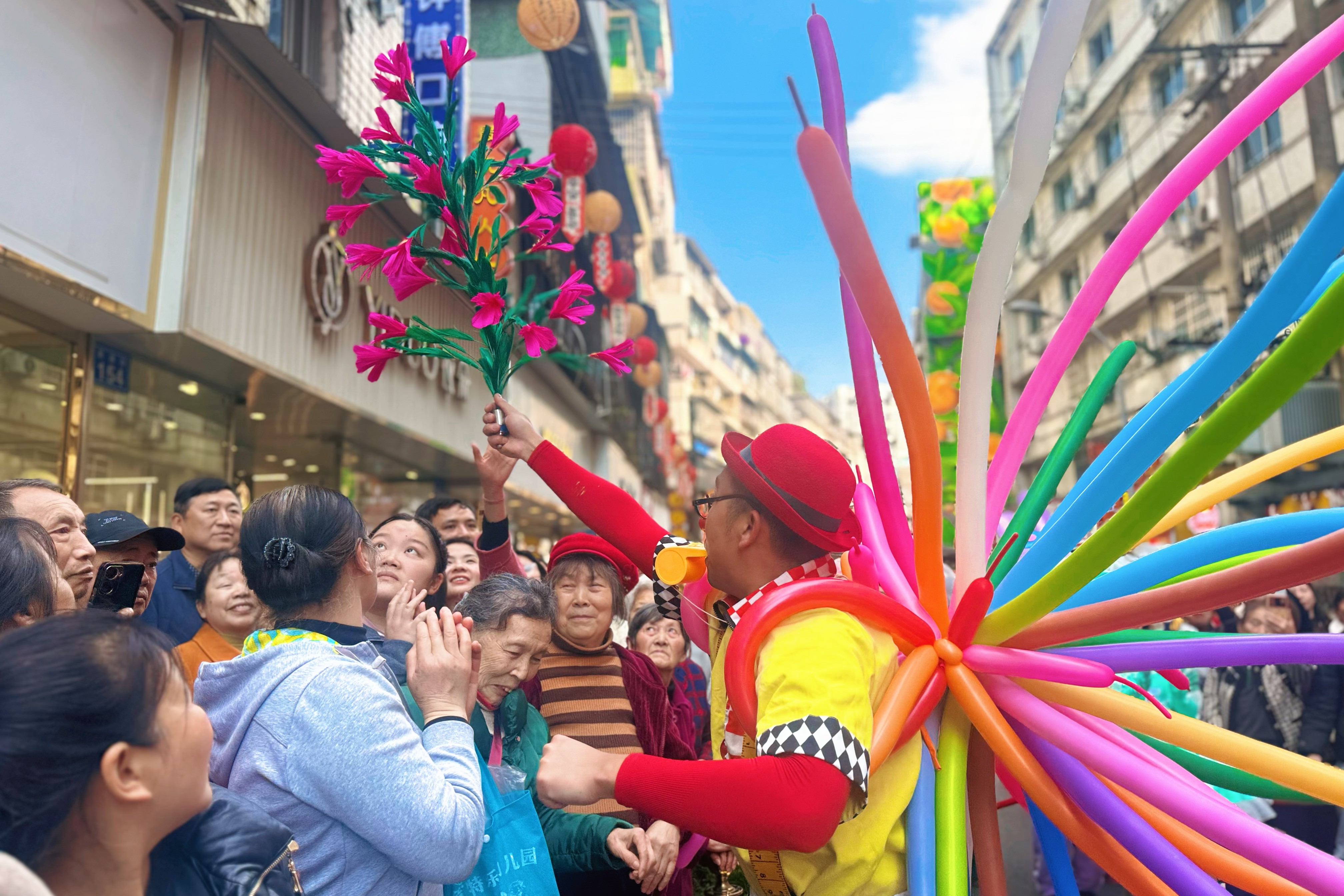 如果说潮流表演是给孩子们的惊喜,那么不定时出没的NPC则让全街区的市民都收获了满满的福气。活动期间,身着国风服饰的NPC手持一大叠好运红签,随机出现在箭道街的各个商铺门口、街巷拐角。“恭喜!抽到上上签啦,祝您马年万事顺遂!”“接好运,新的一年财源广进!”热情喊话让现场氛围愈发火热。