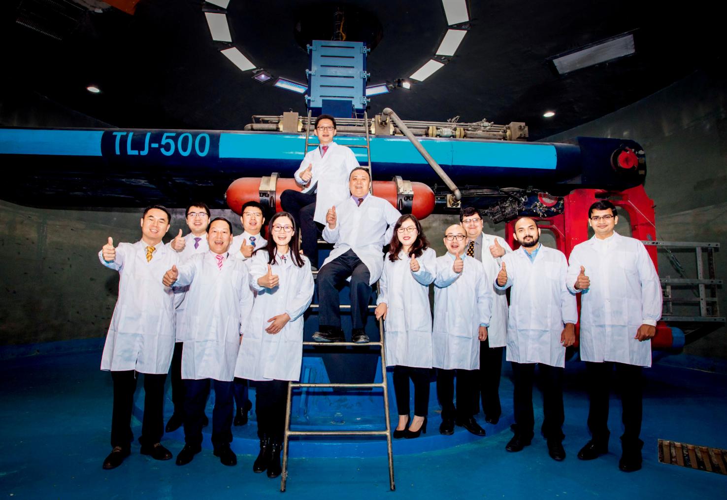 许强(右六)和团队在他们研制的大型土工离心机前合影。(受访者供图)