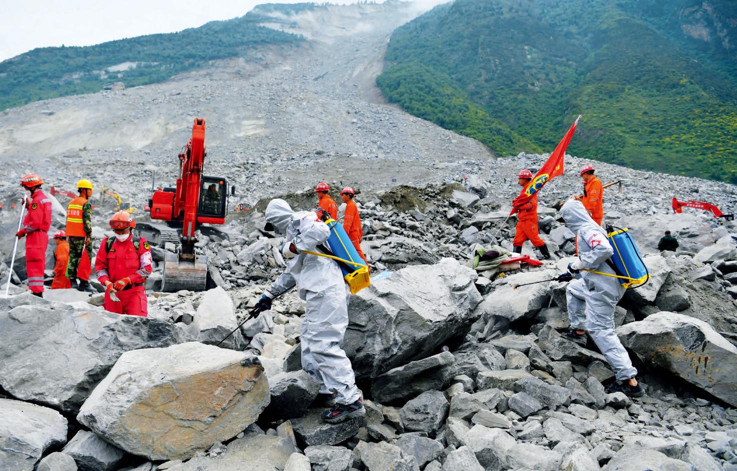 2017年6月,救援人员在新磨村山体滑坡现场忙碌。(视觉中国)