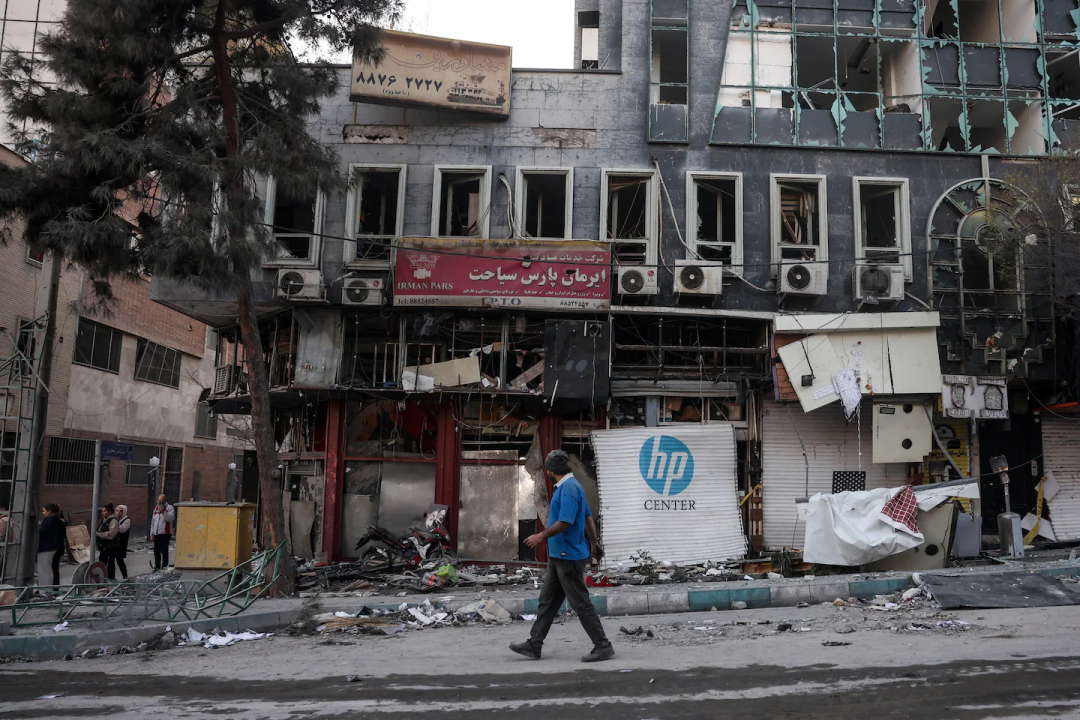 ·当地时间3月2日,美以联合对伊朗发起的军事行动仍在持续,一名男子走过德黑兰尼卢法广场附近受损的居民楼。(法新社)