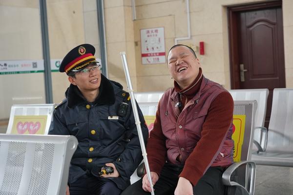 “快过年了还去厦门?”福鼎火车站客运值班员叶耀君接过背包,将孙伍飞的左手放到自己肩膀上,像往常一样拉着家常引导孙伍飞进站。孙伍飞笑得合不拢嘴,“朋友约我去吃土笋冻,回头给你捎点尝尝”。