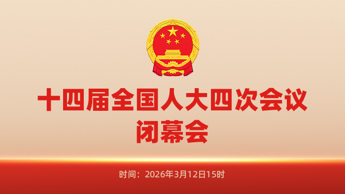 2026年3月12日(星期四)15时,十四届全国人大四次会议闭幕会将在人民大会堂举行。