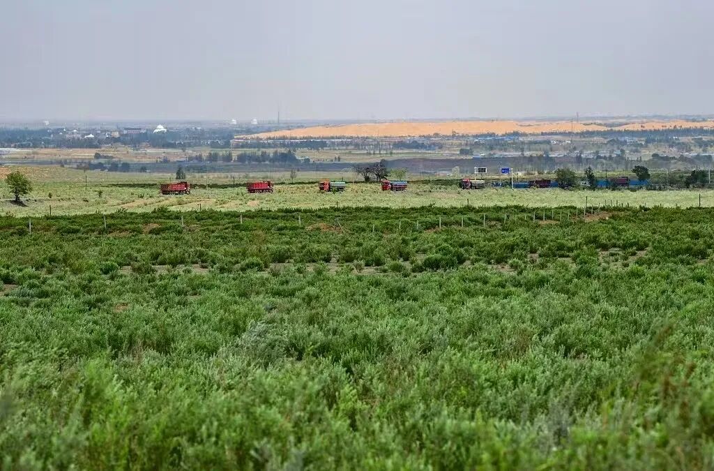 现在笔直的柏油马路直通井背塘,路两侧是伟岸的行道树,一排排樟子松、油松黑压压地伸向远方。放眼望去是漫山遍野的青松绿柏和经济果木、沙漠玫瑰种植基地,采摘大棚里有各种南方水果。曾经的毛乌素沙漠变了,变成了金山银山。玉珍生态园现在每年的产值都在千万元之上。