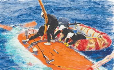 2015年3月,搭载“蛟龙”号载人潜水器的母船返回位于青岛的国家深海基地码头。图为“蛟龙”号作业现场。