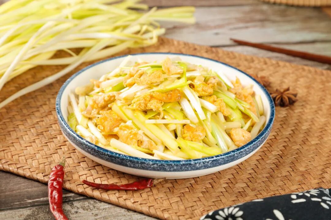 蒜黄质地比较柔嫩,可以与鸡蛋、猪肉、虾仁同炒。