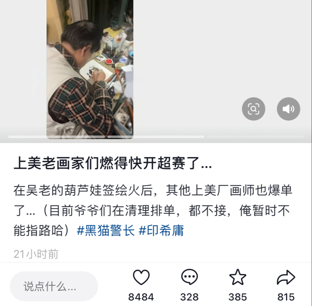 博主在网上晒“黑猫警长”爷爷“加班”赶画